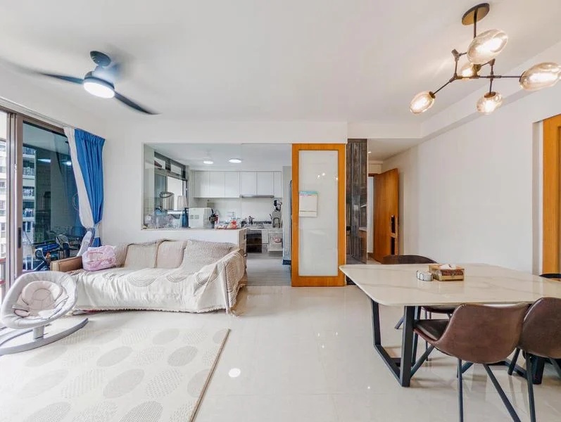 Step into a sanctuary of light and space at Rivercove Residences, where the open-concept living and dining area greets you with polished floor tiles and a stunning modern chandelier. Abundant natural light floods the unit, accentuating the sleek finishes and inviting ambiance, while the glass kitchen partition offers a glimpse of culinary creativity. Enjoy serene views of greenery and urban residential life from your windows, creating a peaceful retreat in the heart of Anchorvale.