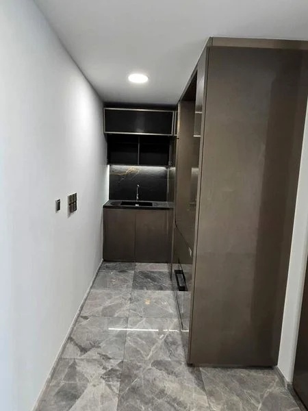 This efficient Type B1 layout features two well-appointed bedrooms, including a master suite with an en-suite bathroom adorned with designer fixtures and a luxurious rain shower. The kitchen is a culinary delight, equipped with integrated appliances, sleek handleless cabinetry, and dark stone finishes that perfectly complement the modern aesthetic. Every detail, from the under-cabinet LED lighting to the track lighting in the living room, has been thoughtfully designed to elevate your living experience.