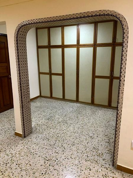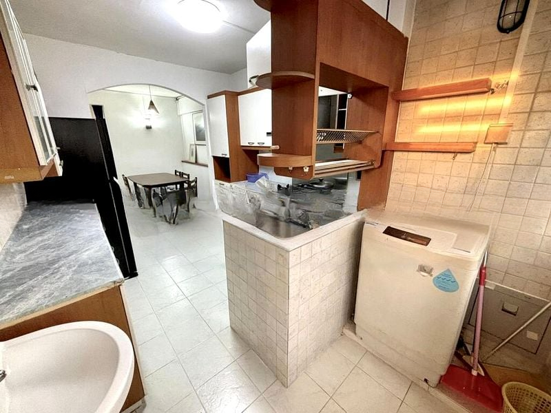 This standard 3-room HDB layout features two cozy bedrooms, a separate living area, and a galley kitchen equipped with an integrated laundry drying area. The dedicated store room adds practicality, while the split bathroom and WC layout ensures convenience for family living. Each bedroom is fitted with air conditioning and ceiling fans, providing comfort throughout the year.