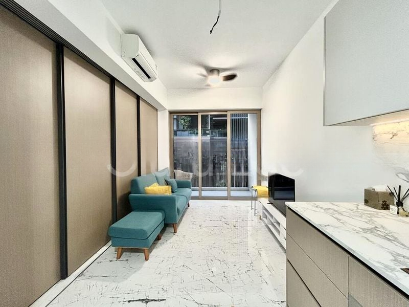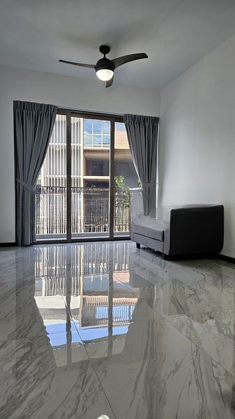 Step into a brand-new sanctuary where modern minimalism meets abundant natural light. The high-gloss marble-patterned floor tiles reflect the sunlight streaming through the large floor-to-ceiling windows, creating an inviting and airy ambiance. The urban views from your living room balcony offer a vibrant backdrop to your everyday life.