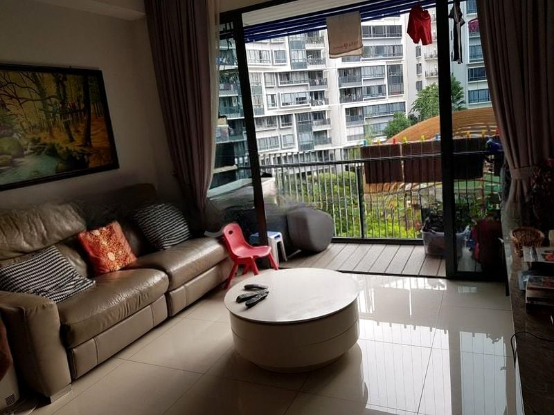 Step into a bright and airy sanctuary at The Palette, where abundant natural light floods the open-concept living space, accentuating the polished white tiles and inviting ambiance. The seamless flow from the living room to the balcony offers an unblocked view of lush greenery, creating a tranquil escape right at your doorstep.