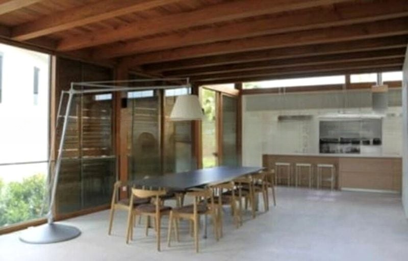 Step into a world of luxury as you enter this designer villa, where abundant natural light floods the open-plan living and dining area through floor-to-ceiling glass walls. The ambiance is bright and airy, accentuated by vaulted ceilings and stunning views of the waterfront, pool, and neighboring luxury villas. The elegant wood paneling and integrated shelving create a sophisticated yet inviting atmosphere.