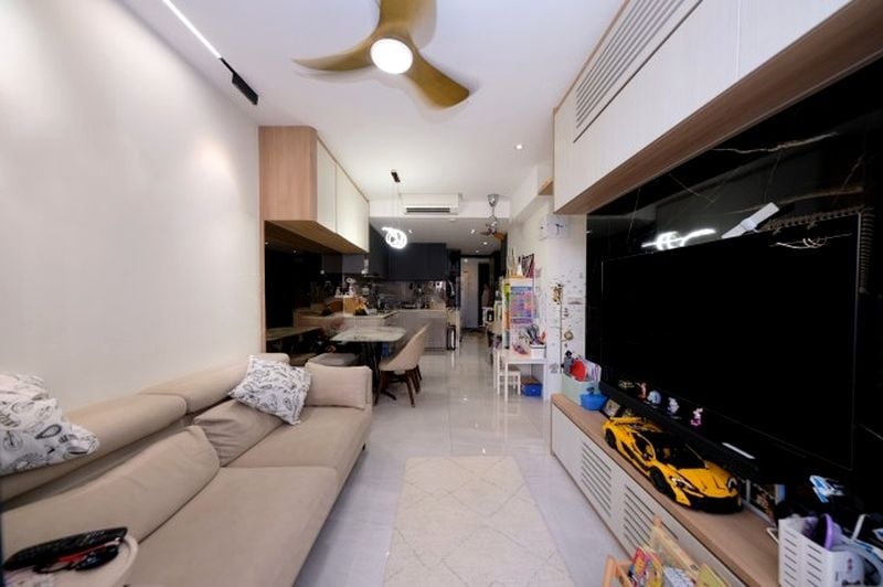This fully-furnished 3-bedroom condominium boasts a thoughtful layout designed for modern living. Each bedroom features built-in wardrobes and ample storage solutions, including integrated study desks and storage beds. The bathrooms are elegantly finished with rain showers and contemporary vanities, ensuring a luxurious experience.