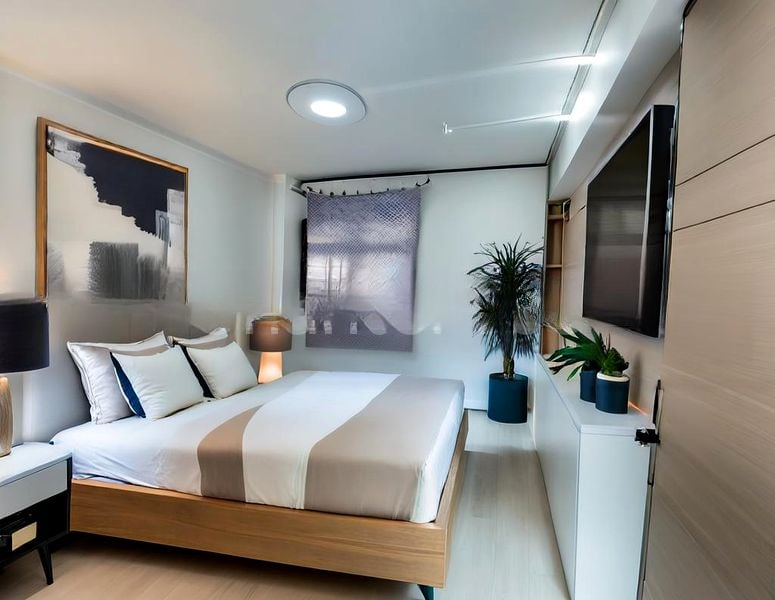 This 2-bedroom flat features a well-thought-out layout with a split bathroom and toilet design for added convenience. The kitchen, adorned with blue wall tiles and mosaic flooring, integrates a cozy dining area, while the bedrooms boast large windows framed in black, allowing for stunning views and ample ventilation. Although the unit is in its original condition, it offers a unique opportunity for renovation to suit your personal style.