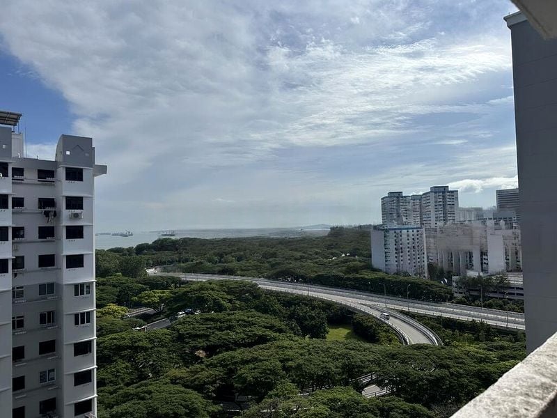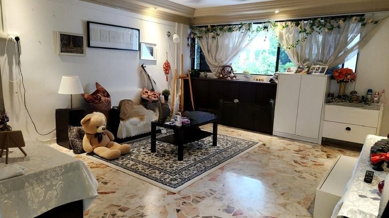 Step into this bright and airy HDB unit at 32 Marine Cres, where abundant natural light floods the spacious living room, showcasing original terrazzo flooring and unblocked panoramic views of lush greenery, the sea, and the city skyline. The inviting ambiance creates a warm and welcoming atmosphere, perfect for relaxation and entertaining.