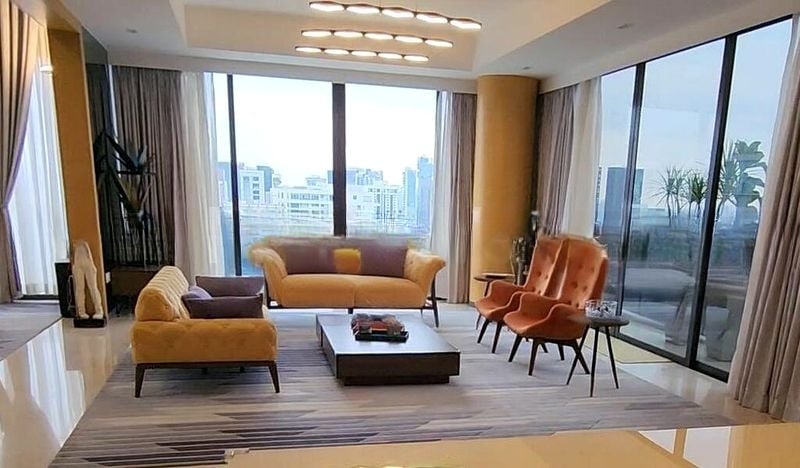 Step into a world of luxury as you enter this stunning unit at TRILIGHT. The abundant natural light floods the space through floor-to-ceiling windows, illuminating the polished marble flooring and creating a bright and airy ambiance. Enjoy unblocked panoramic views of the city skyline and lush greenery from both the living room and the private rooftop terrace, where a lap pool awaits your relaxation.
