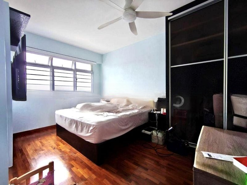 Step into a beautifully renovated 3-bedroom flat that exudes modern minimalism, where abundant natural light dances across the wood-grain flooring. The open-concept living and dining area welcomes you with a wood-textured feature wall and recessed downlights, creating a warm and inviting ambiance. Floor-to-ceiling mirrored wardrobes in the master bedroom enhance the sense of space while offering practical storage solutions, complemented by urban landscape views from large windows.