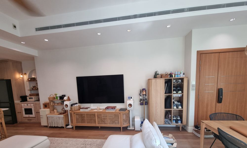 Step into a bright and airy sanctuary where natural light dances through floor-to-ceiling glass doors, framing stunning views of the city skyline and lush greenery. The well-maintained unit features light wood flooring and a spacious balcony that invites you to unwind while soaking in the serene surroundings.