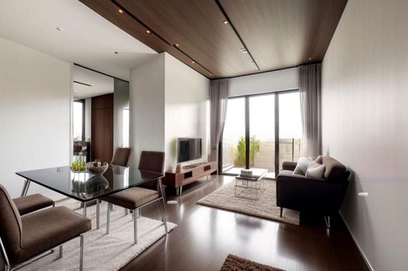 This thoughtfully designed 764 sqft unit features two spacious bedrooms, each adorned with warm wood-look laminate flooring and large windows that invite in the sunlight. The minimalist kitchen boasts integrated cabinetry and high-end appliances, while the bathrooms showcase marble-patterned wall tiles and modern fixtures. With a seamless flow between spaces, this home is perfect for both relaxation and entertaining.