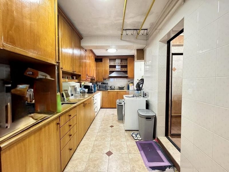 This well-maintained 3-bedroom unit features an open-concept dining area, ideal for entertaining, and a spacious galley kitchen equipped with wooden cabinetry and a dedicated laundry area. Each bedroom is designed for comfort, with ceiling fans and built-in wardrobes, ensuring ample storage and relaxation space. The built-in wooden display cabinet in the living room adds a touch of elegance, making this home both functional and stylish.