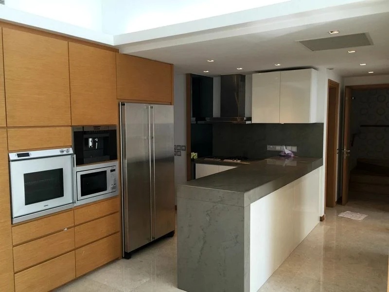 This well-maintained 3-bedroom, 2-bathroom unit features an open-concept living room that seamlessly flows into a stunning island kitchen, equipped with integrated appliances and dual-tone cabinetry. The master suite offers a tranquil retreat with built-in wardrobes and city views, while the luxurious bathroom boasts a rain shower and marble wall tiles. Additional highlights include a utility area with built-in storage solutions and a front-load washing machine, ensuring practicality meets style.