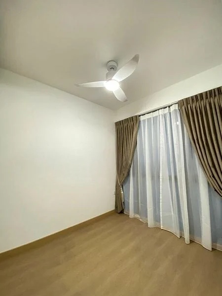 Step into a bright and airy sanctuary at TREASURE AT TAMPINES, where abundant natural light floods the space, highlighting the elegant finishes and thoughtful design. The living room welcomes you with sliding glass doors that open to a charming balcony, offering serene views of the pool and lush greenery, creating a tranquil atmosphere for relaxation.