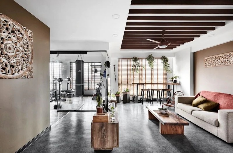 Step into this beautifully renovated 3-bedroom flat and be greeted by an abundance of natural light cascading through large windows, illuminating the modern industrial ambiance. The open-concept living room features striking wooden ceiling slats and concrete-look flooring, creating a chic yet inviting space. Enjoy breathtaking views of the city skyline from the comfort of your home, complemented by a stylish wooden bar counter by the window.