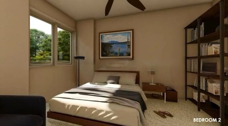 Step into a warm and inviting space where the charm of terrazzo flooring meets the gentle breeze from ceiling fans in every room. The cozy ambiance is enhanced by natural light filtering through the windows, offering serene views of lush greenery. An elegant archway leads you from the living room to the kitchen, creating a seamless flow that makes this unit feel like home.