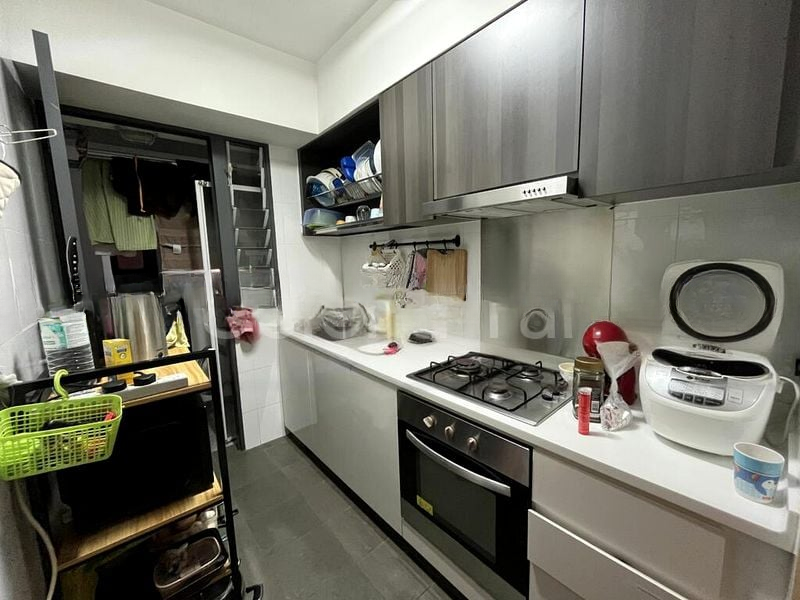 Step into this inviting 3-bedroom HDB flat where warmth and comfort embrace you. The living room welcomes you with a wood-paneled feature wall, recessed lighting, and access to a private balcony that offers delightful views of urban greenery. Natural light filters through large windows, creating a cozy ambiance perfect for relaxation.