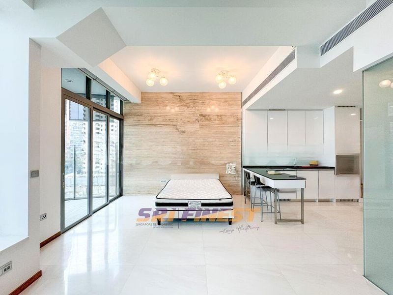 Step into a world of modern elegance at The Scotts Tower, where abundant natural light floods the open-concept living space, accentuating the polished tile flooring and stunning city skyline views. The floor-to-ceiling windows and sleek wooden window ledges create an inviting ambiance, perfect for relaxation and entertaining.