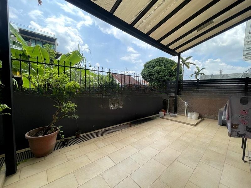 Step into this beautifully maintained landed home and be greeted by an ambiance that is both bright and airy. The abundant natural light floods the spacious interiors, highlighting the elegant finishes and inviting views of lush greenery and neighboring rooftops. The expansive balcony, complete with an awning and outdoor dining area, beckons you to unwind and enjoy the serene surroundings.