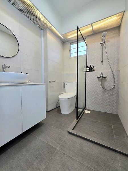 Step into this bright and airy 4-room point block unit, where abundant natural light floods through large windows, creating a warm and inviting atmosphere. The spacious living area, complemented by a ceiling fan, offers a glimpse of the urban landscape and lush greenery, making it a perfect retreat from the bustling city.