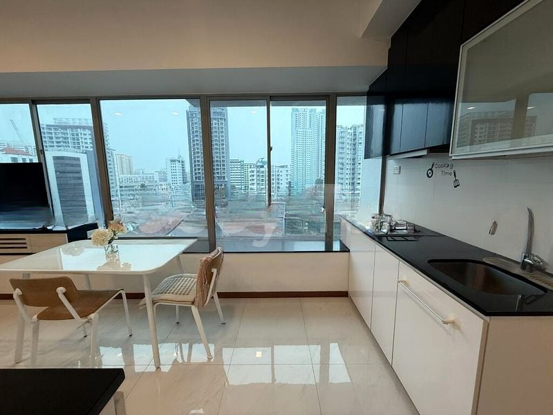 This well-maintained 2-bedroom unit features an open-concept living and dining area, complete with a charming window seat perfect for relaxation. The master bedroom boasts floor-to-ceiling windows and direct balcony access, while the bathroom is a luxurious retreat with a rain shower and glass partition. Thoughtfully designed built-in sliding wardrobes provide ample storage, ensuring a clutter-free space.