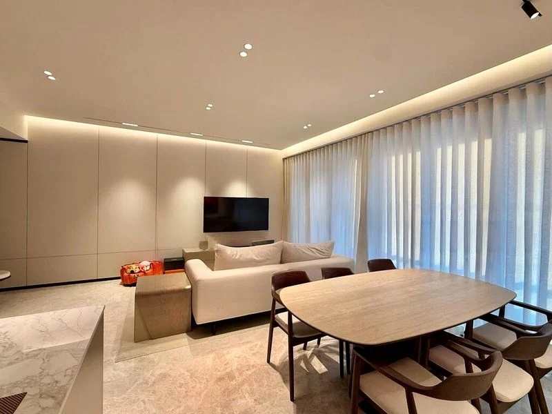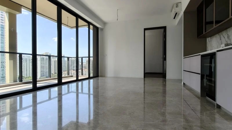 Step into a world of elegance as you enter this brand-new unit at Irwell Hill Residences. The abundant natural light floods through the floor-to-ceiling windows, illuminating the modern minimalist design that features sleek marble-look floor tiles and a striking black marble-look backsplash in the kitchen. The lush greenery and urban skyline views create a serene backdrop, making every moment spent here feel special.