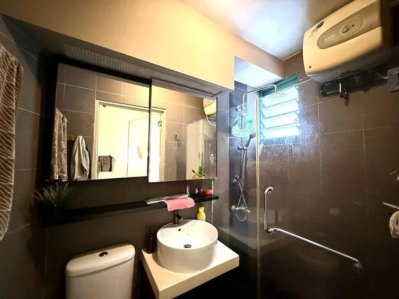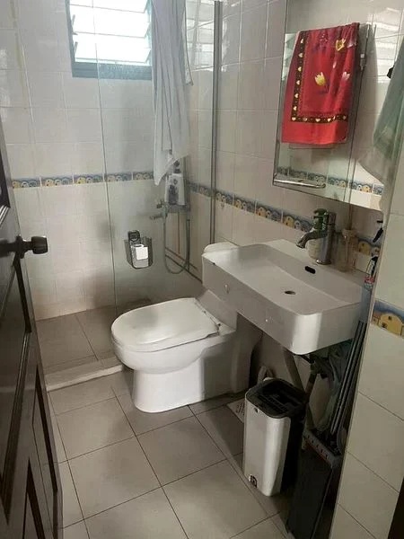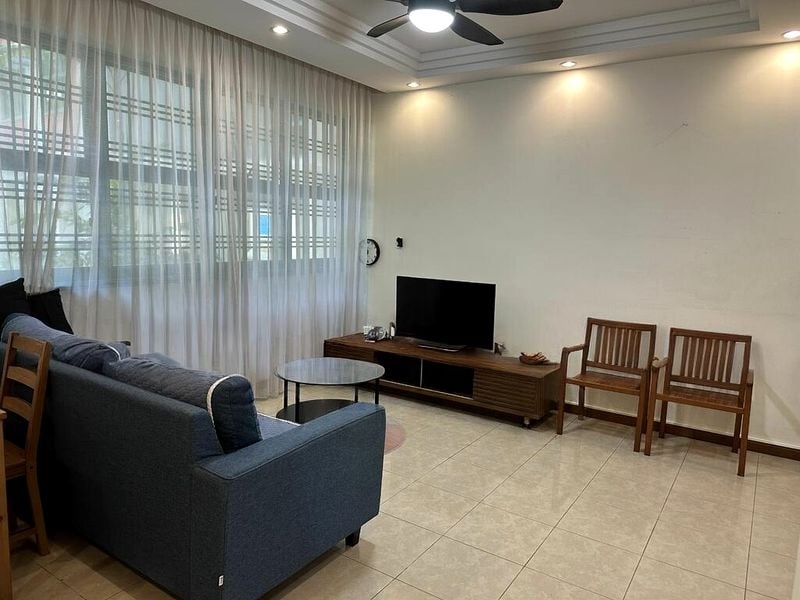 This well-maintained 3-bedroom flat features a thoughtful layout, with a seamless flow from the open-concept dining area, adorned with a dark wood dining set and decorative wall lighting, to the cozy bedrooms showcasing beautiful parquet flooring. Each room is designed for comfort, with ceiling fans and ample storage, including a large sliding door wardrobe and a dedicated study desk by the window, perfect for work or leisure.