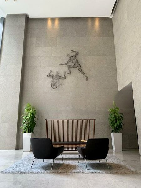 The efficient 1,313 sq.ft layout features a private lift lobby for added exclusivity, a spacious living area that seamlessly connects to a large balcony, and a master bedroom complete with an en-suite bathroom. Enjoy the community's standout amenities, including a large lap pool, an outdoor dining area under a stylish slatted pergola, and a high-ceiling lobby adorned with modern art installations and designer lounge chairs.