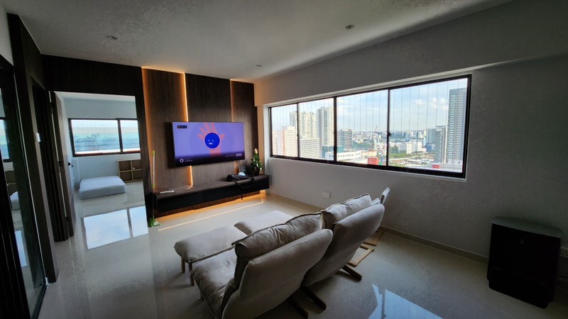Step into a world of modern elegance as you enter this beautifully renovated 2-bedroom unit at Textile Centre. The abundant natural light floods through large windows, illuminating the open-concept living space adorned with a stunning wood-paneled feature wall and LED accent lighting. Enjoy breathtaking views of the city skyline that create a vibrant backdrop for your daily life.