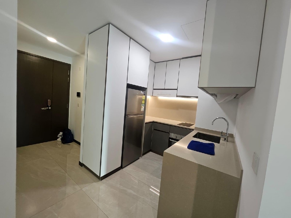 Step into a world of contemporary elegance as you enter this beautifully renovated unit at Normanton Park. The modern minimalist design is accentuated by natural light filtering through large windows, offering stunning views of the city skyline. The ambiance is inviting, with sleek finishes that create a harmonious living space.