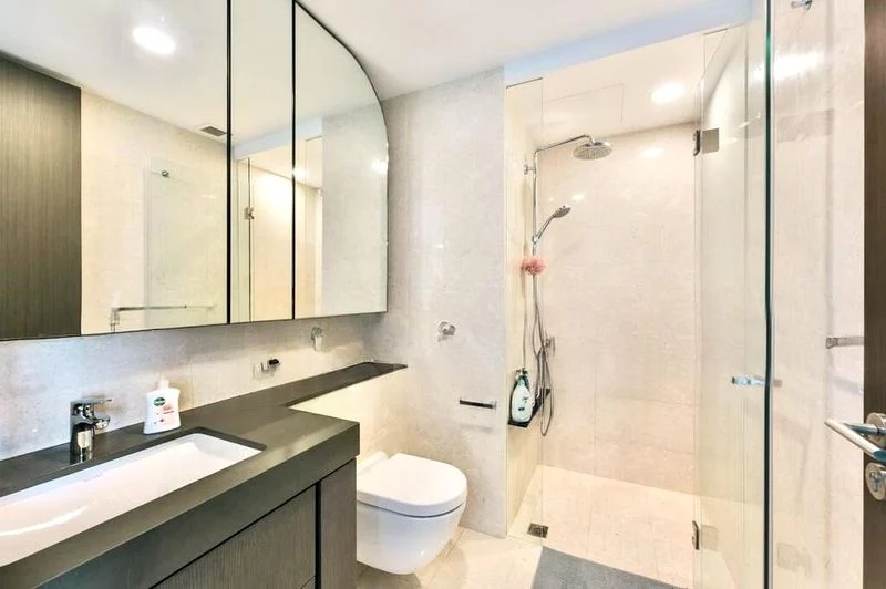 This well-maintained 2-bedroom, 2-bathroom unit features an open concept layout that seamlessly connects the living area to the balcony, ideal for entertaining or enjoying quiet evenings. The galley kitchen is a chef's dream, equipped with an induction hob and integrated oven, complemented by a stylish glass partition. The bathrooms boast luxurious finishes, including grey stone-look tiles and a rain shower, ensuring a spa-like experience at home.