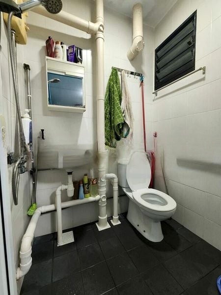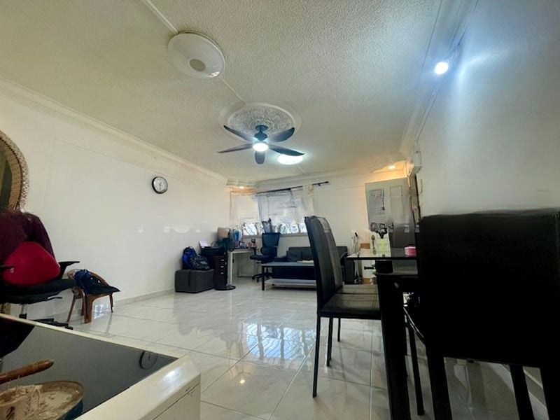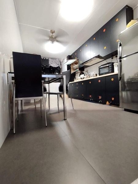 This well-maintained HDB unit boasts a thoughtful layout with two spacious bedrooms, each adorned with built-in dark wood wardrobes and air conditioning for ultimate comfort. The study area, complete with dedicated workspace and storage cabinets, is perfect for those working from home. The open living space flows seamlessly, providing an ideal setting for relaxation and entertainment.