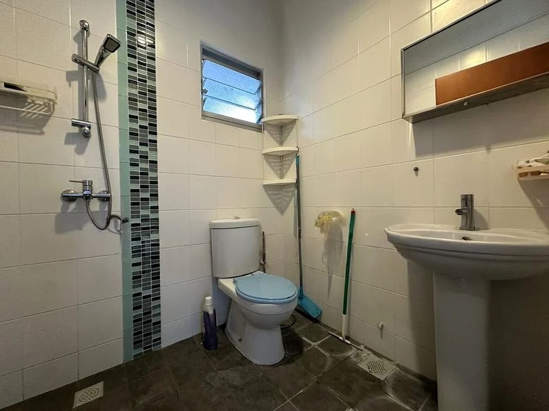 This well-maintained 3-bedroom flat boasts a thoughtful layout, featuring a modern kitchen with dark wood-grain cabinets and striking black countertops, perfect for culinary enthusiasts. The bathrooms are a highlight, showcasing a luxurious marble-look vanity and a rain shower enclosed in glass, providing a spa-like experience at home. Each bedroom is designed for comfort, with wood flooring and built-in wardrobes that maximize space and style.