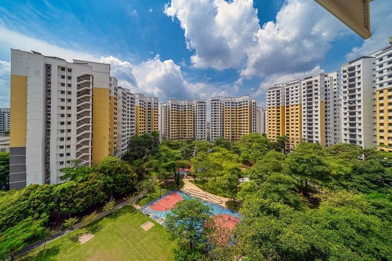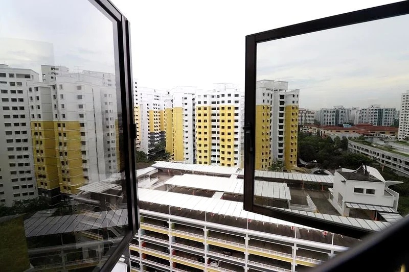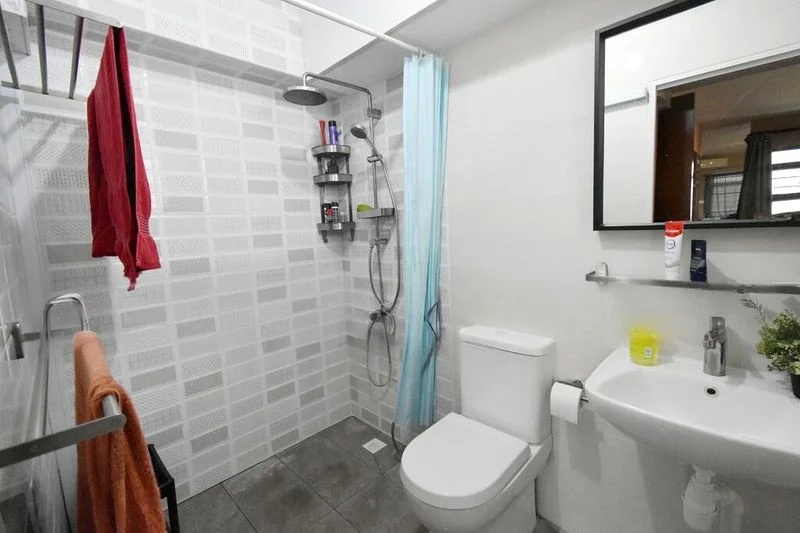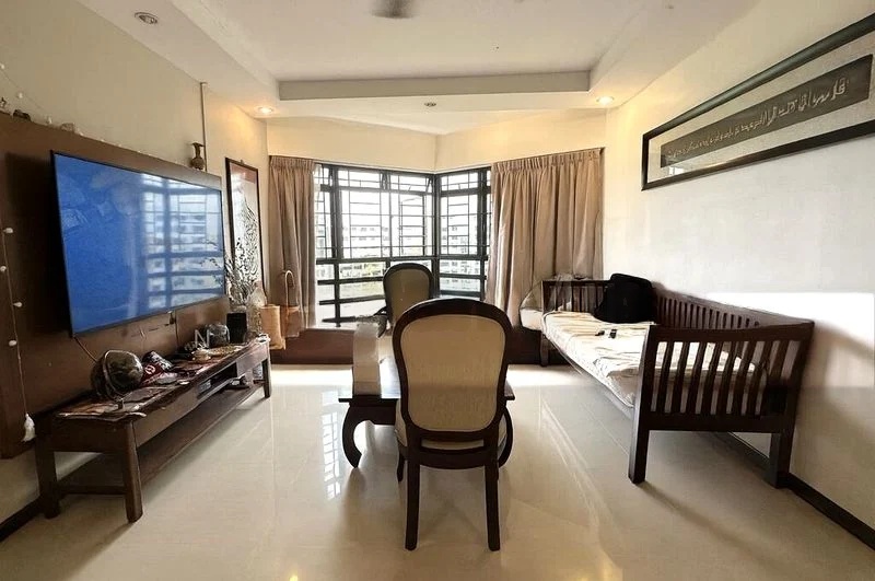 Step into a bright and airy sanctuary at Admiralty Link, where abundant natural light floods the open-concept living and dining area, accentuated by elegant white floor tiles and a stylish glass kitchen partition. The inviting ambiance is perfect for relaxation and entertaining, while the views of the surrounding HDB estate add a touch of community charm.