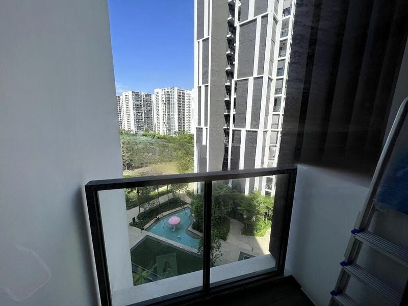 Step into a world of contemporary elegance as you enter this beautifully maintained 2-bedroom unit at Botaniquie at Bartley. The abundant natural light floods the space, accentuating the sleek marble-look floor tiles in the living area, while the sliding glass doors open to a private balcony that offers captivating views of the city skyline. The modern minimalist ambiance is enhanced by grey blackout curtains that provide both style and comfort.