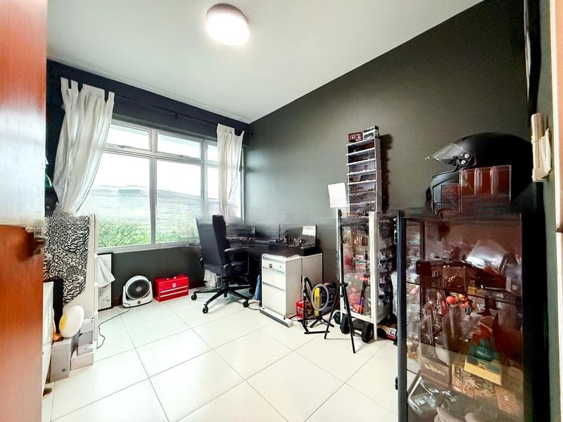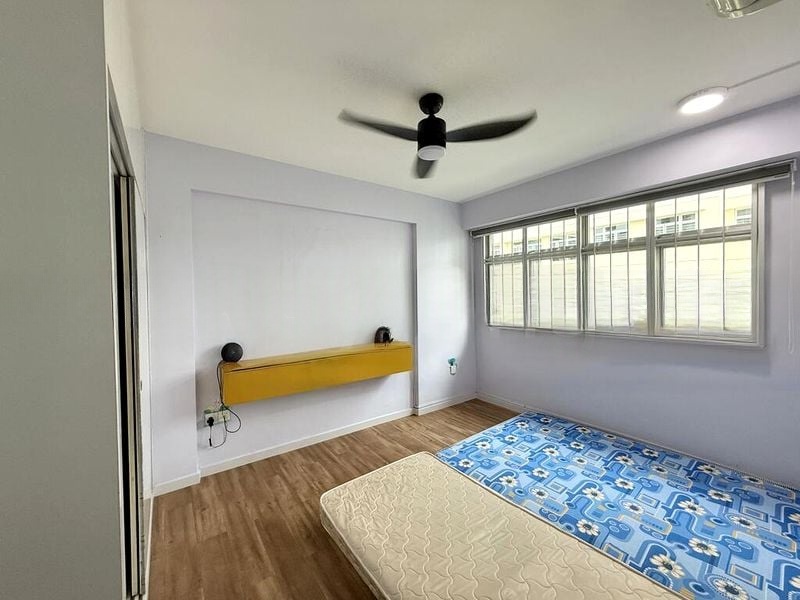 Step into this beautifully renovated 3-bedroom flat and be greeted by a modern minimalist ambiance that exudes comfort and style. The natural light filters through the space, highlighting the grey wood-look laminate flooring and the teal accent wall in the master bedroom. The open layout invites you to explore the custom built-in wardrobes and integrated desk niche, creating a seamless flow throughout the unit.