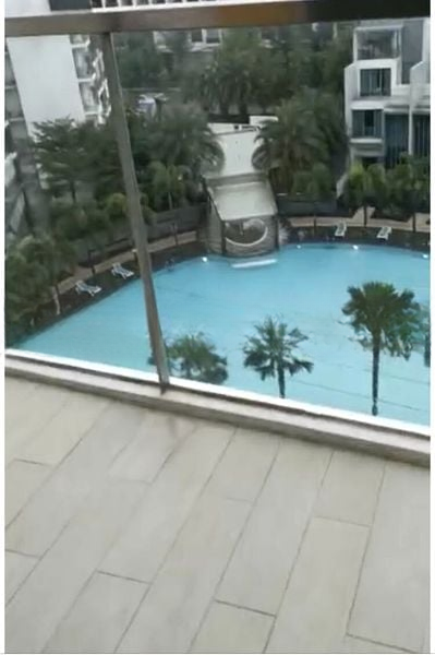 Step into a serene oasis where modern minimalism meets comfort. The moment you enter this well-maintained 4-bedroom unit, you are greeted by an abundance of natural light filtering through the glass balcony railing, illuminating the spacious living area. Enjoy tranquil views of the pool and lush greenery, creating a peaceful ambiance that invites relaxation.