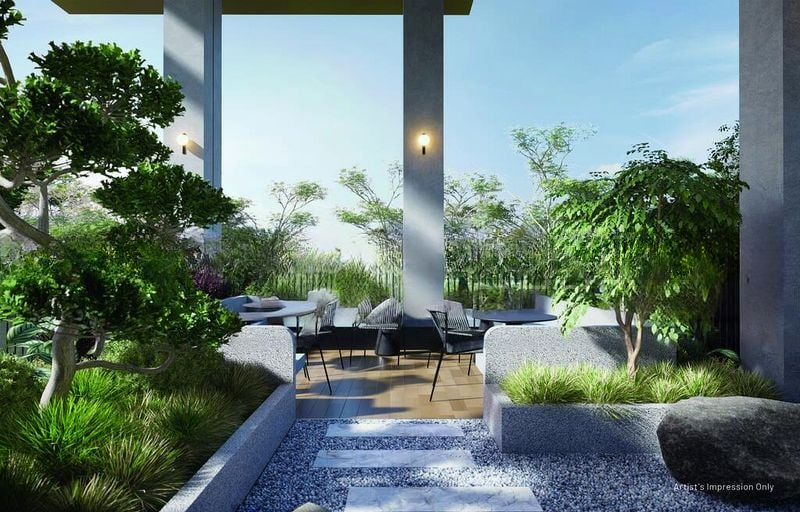 Step into a world of modern elegance as you enter this brand-new designer unit at Hill House. Bathed in abundant natural light, the open-plan living area features floor-to-ceiling windows that frame breathtaking views of the city skyline and lush greenery. The minimalist ambiance is accentuated by sculptural 3D wall art and a chic, sunken circular rooftop seating area that invites relaxation and social gatherings.