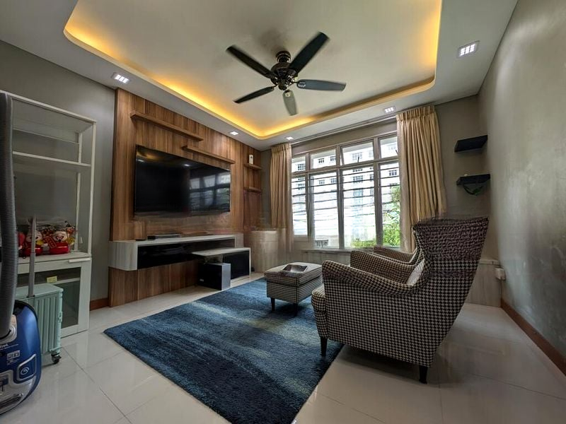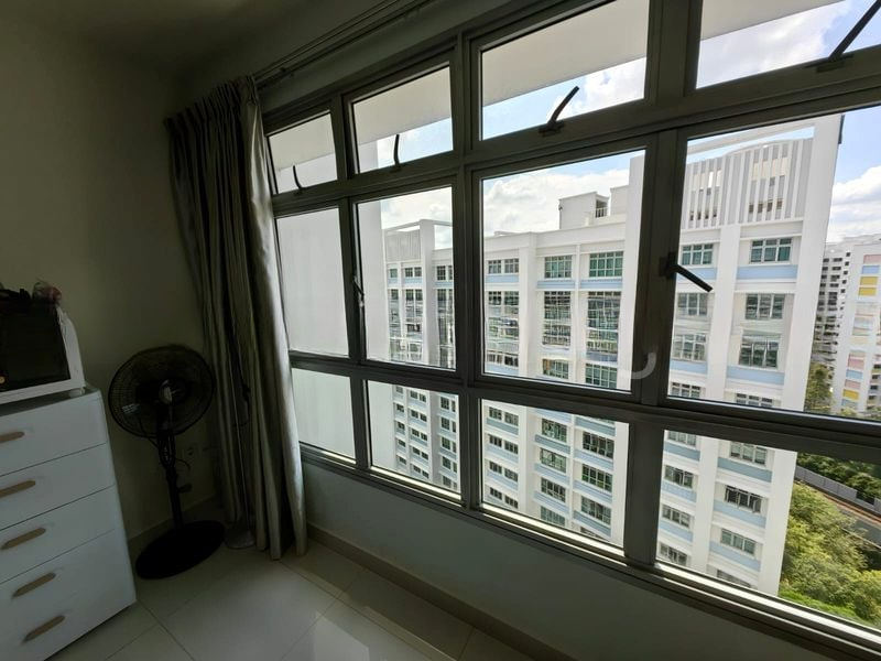 Step into a bright and airy sanctuary at 802A Keat Hong Cl, where abundant natural light floods the spacious living area through large windows, enhancing the polished tile flooring and highlighting the elegant false ceiling with recessed lighting. The inviting ambiance creates a warm welcome, making it the perfect space for relaxation and entertaining.