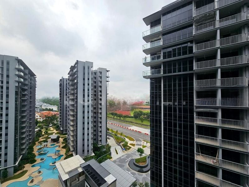 Step into a world of modern elegance as you enter this brand-new unit at The Florence Residences. Bathed in abundant natural light, the open concept living area features large grey floor tiles that seamlessly connect to a spacious balcony, offering unobstructed views of the expansive pool and lush greenery. The minimalist design creates a bright and airy ambiance, perfect for relaxation and entertaining.