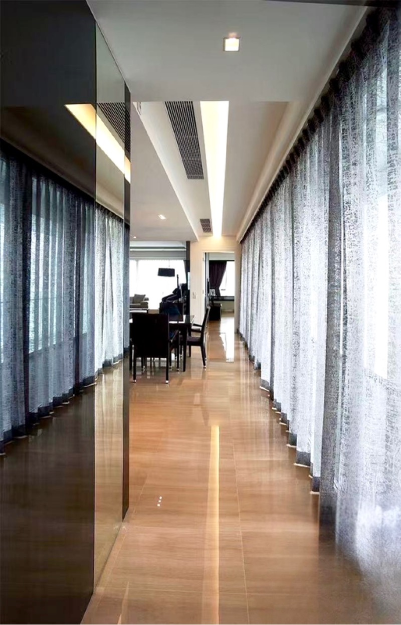 This spacious 4-bedroom, 2-bathroom unit boasts an open-concept layout, seamlessly connecting the living and dining areas. The living room features an L-shaped sofa, a dedicated piano area, and a massage chair, making it an ideal space for unwinding. The dining area showcases reflective black cabinetry and recessed ceilings, while the bathrooms are equipped with luxurious vessel sinks and large vanity mirrors, ensuring comfort and style throughout.