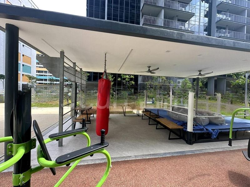 This well-maintained 3-bedroom unit boasts standout features including a luxurious bathroom with a floating vanity and integrated mirror storage, and a spacious common area designed for both work and leisure. Enjoy the semi-outdoor reading pods, integrated desks, and a fitness area complete with an outdoor boxing ring and calisthenics equipment, perfect for an active lifestyle. The thoughtful layout maximizes space and comfort, making it ideal for families or professionals alike.