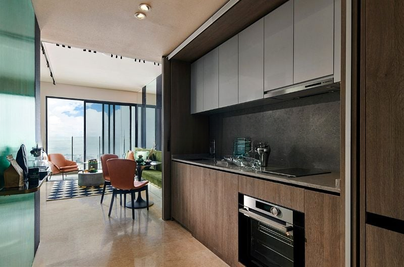Step into a world of modern elegance as you enter this beautifully designed unit at Avenue South Residence. Bathed in abundant natural light, the open-concept living and dining area features exquisite marble flooring and a custom green velvet banquette that invites relaxation. The panoramic views from the high-floor balcony offer a breathtaking backdrop of the Pasir Panjang port and lush greenery, creating a serene ambiance that you'll love coming home to.