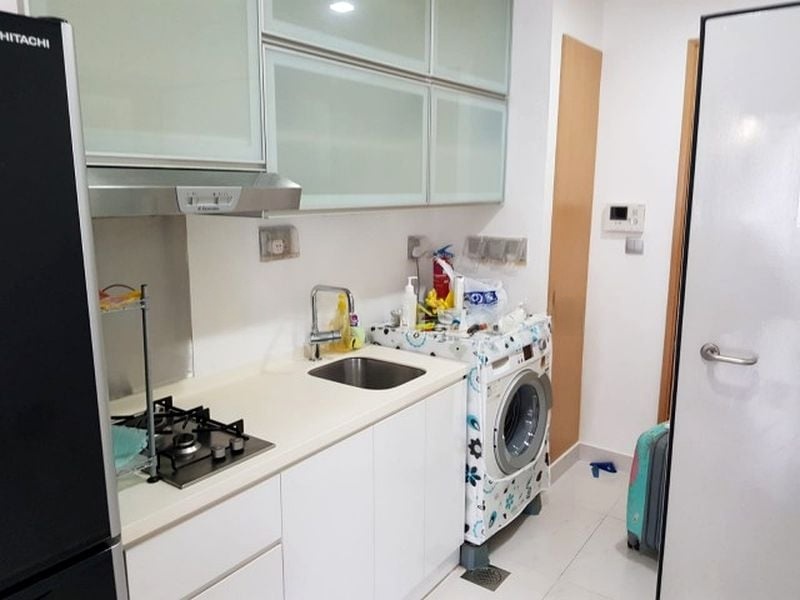 This well-maintained 3-bedroom, 2-bathroom condo boasts a functional layout, featuring a contemporary kitchen with minimalist cabinetry and stainless steel appliances. The spacious dining area, complete with a ceiling fan and integrated light, is perfect for entertaining. Retreat to the master bedroom, where built-in wooden wardrobes and a study desk offer both comfort and practicality, while the modern bathroom showcases stylish tiling and a glass shower screen.