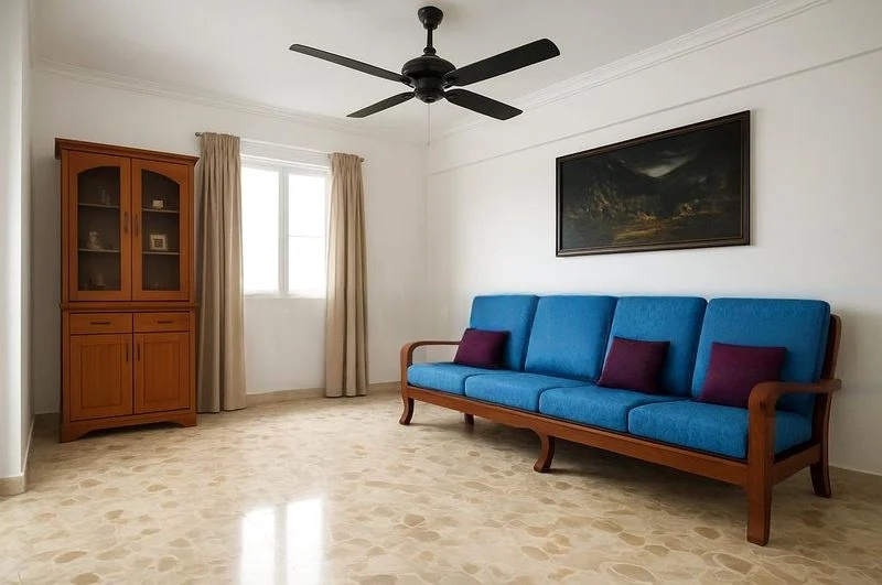 Step into a world of timeless charm with this spacious HDB flat, where classic terrazzo flooring greets you at every turn. The moderate natural light filters through the windows, creating a warm and inviting ambiance, while the arched doorway transitions add character to the living space. Enjoy views of the neighboring blocks, providing a sense of urban connectivity.