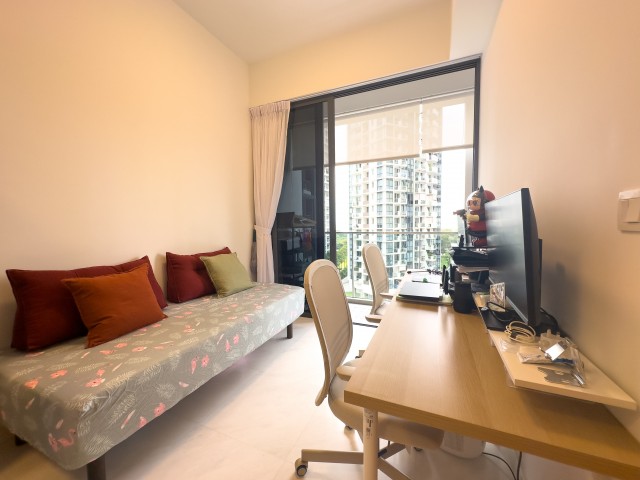 Step into this brand-new unit at Coastline Residences and be captivated by the abundant natural light flooding through the open-concept living area. The modern minimalist design features elegant marble-look floor tiles that seamlessly connect the indoor and outdoor spaces, offering breathtaking views of the city skyline and lush greenery from your private balcony.