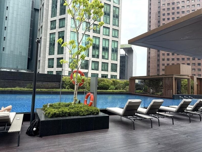 Step into a world of luxury as you enter this brand-new designer unit at ONE BERNAM. Bathed in abundant natural light, the open-concept living area features a stunning mirrored ceiling and elegant marble-look flooring, creating a sense of spaciousness and sophistication. Floor-to-ceiling windows frame breathtaking views of the city skyline, pool, and lush greenery, inviting you to relax and unwind in style.