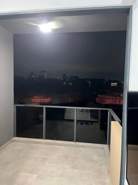 Step into a sanctuary of modern minimalism where natural light dances through floor-to-ceiling windows, illuminating the polished tile flooring and inviting you to unwind. The open-concept living area seamlessly transitions to a private balcony, offering unblocked views of the city skyline and lush greenery, creating a perfect backdrop for relaxation.