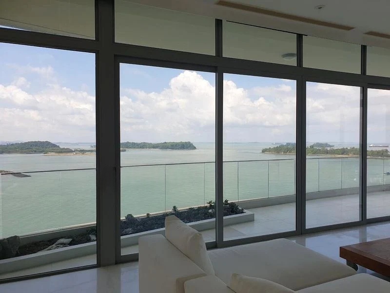 Step into a world of elegance and tranquility as you enter this stunning 5-bedroom unit at The Oceanfront @ Sentosa Cove. The abundant natural light floods through the floor-to-ceiling windows, illuminating the polished marble flooring and creating a bright and airy ambiance. With panoramic views of the sea and islands, you will feel an immediate sense of serenity and connection to nature.