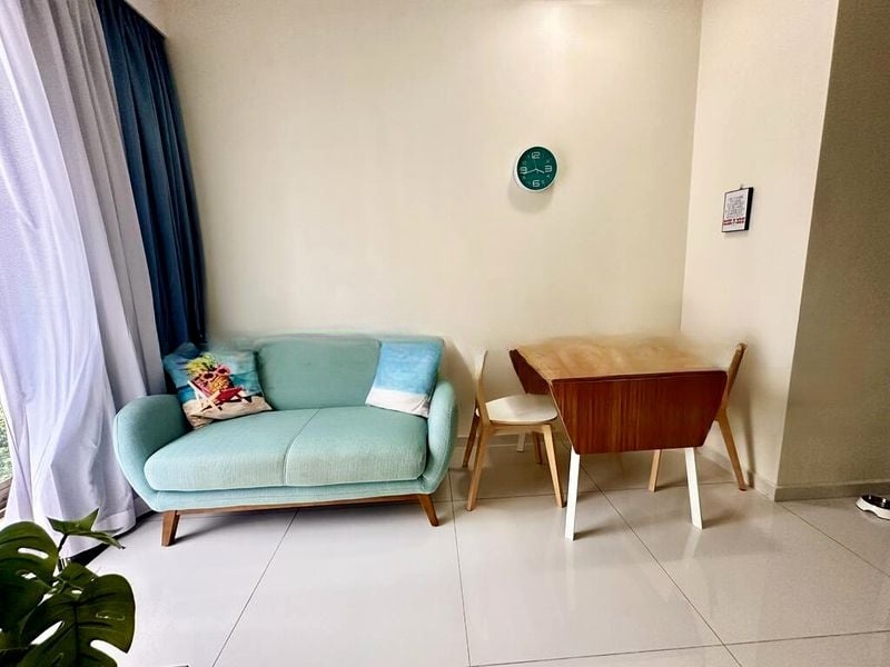 Step into a world of modern minimalist elegance with abundant natural light flooding this well-maintained duplex unit. The sleek finishes and urban city views create an inviting ambiance, while the curved wooden shelving and recessed lighting in the living room enhance the contemporary feel. Enjoy seamless access to the balcony, perfect for unwinding after a long day.