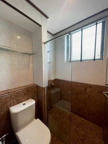 This thoughtfully designed unit boasts standout features including a spacious island kitchen, perfect for culinary enthusiasts, and a cozy balcony adorned with wood-look decking, ideal for relaxation. Each bedroom is equipped with built-in frosted glass wardrobes and ceiling fans, ensuring comfort and style. The modern bathroom features luxurious brown marble finishes, complemented by a glass shower partition, providing a touch of sophistication.