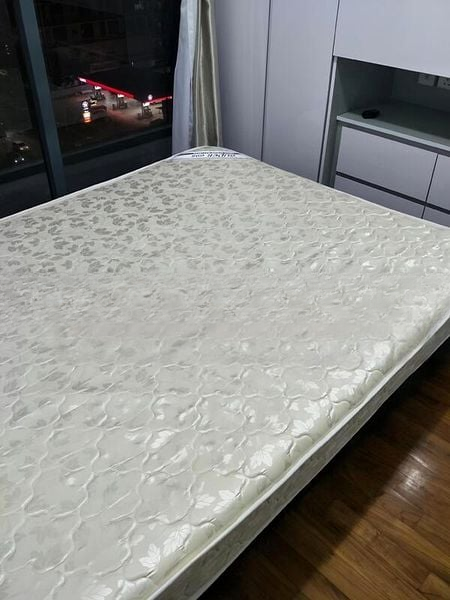 Step into a serene oasis where abundant natural light floods the space, highlighting the modern minimalist design that defines this well-maintained 1-bedroom unit. The unblocked views of the cityscape and lush greenery create a tranquil ambiance, perfect for relaxation after a long day. The open-concept living area, adorned with white tiled flooring and a sliding glass door leading to the balcony, invites you to unwind while enjoying the picturesque surroundings.
